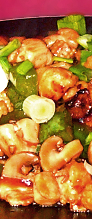 Sweet and Sour Chicken Moo Goo Gai Pan Chicken with Vegetables Chicken with Snow Peas Mongolian Chicken Sichuan Chicken Kung Pao Chicken Hot Pepper Chicken Chicken stir fried with jalapeno peppers. Very hot, a challenge for those who truly enjoy spicy food. Lemon Chicken Orange-flavored Chicken Chicken with Broccoli Cashew Chicken Chicken in Garlic Sauce slices of chicken breast stir fried with veggies in a lightly sweet and spicy sauce Curry Chicken General Tso's Chicken A tasty favorite, only slightly spicy. Sesame Chicken battered chicken lightly drenched in a sweet and savory sesame sauce. |